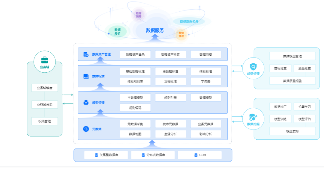 三維天地數據資產管理平臺,是一套集元數據管理、數據標準管理、數據質量管理、數據集成管理、數據模型管理、主數據管理、數據資產管理、數據安全管理、數據生命周期管理、數據清洗及數據分析功能的一體化數據治理平臺,有效打通數據治理各個環節,支持數據治理各核心領域的協調統一管理,實現數據治理工作有效落地,從而更好地釋放數據價值,改進決策、縮減成本、降低風險,助力銀行業數字化轉型,助推高質量發展。