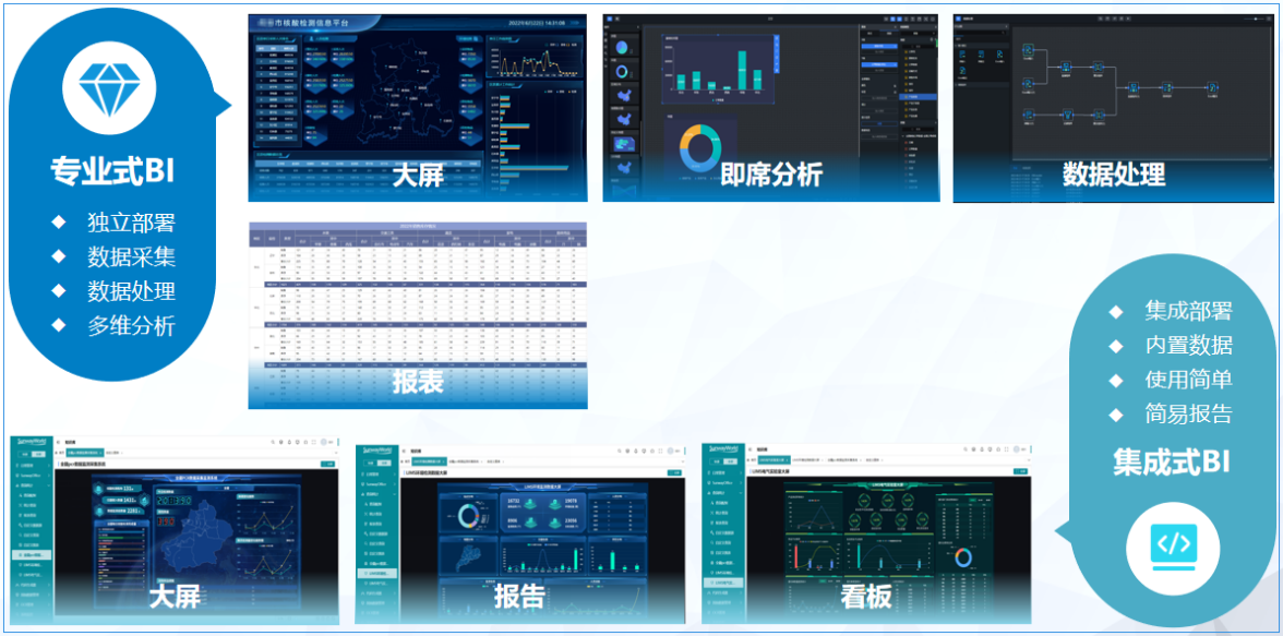 集成式BI是LIMS系統內置的將內部數據到數據可視化展現的一種解決方案。集成式BI提供20余種圖表組件及對應的輔助配置、輔助工具,通過拖拽式的場景設計,滿足用戶對于大屏、報告和看板的需求。
