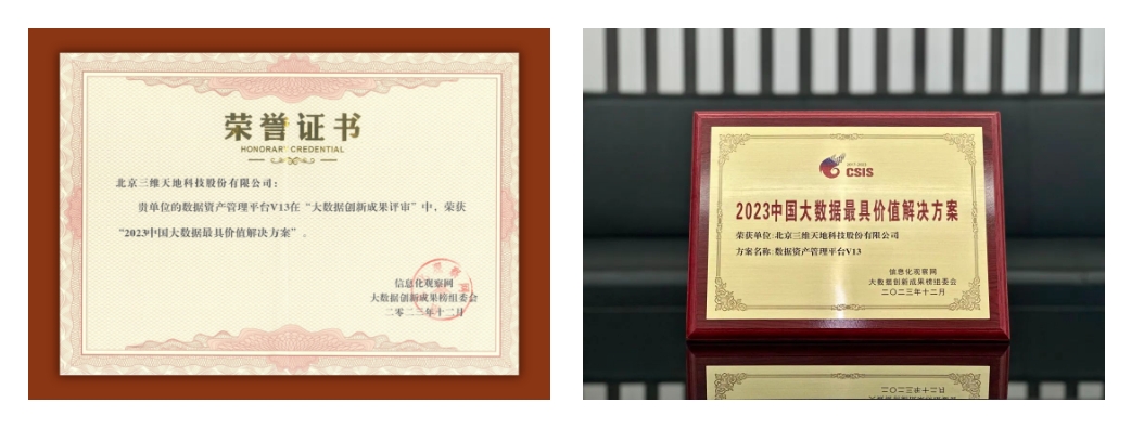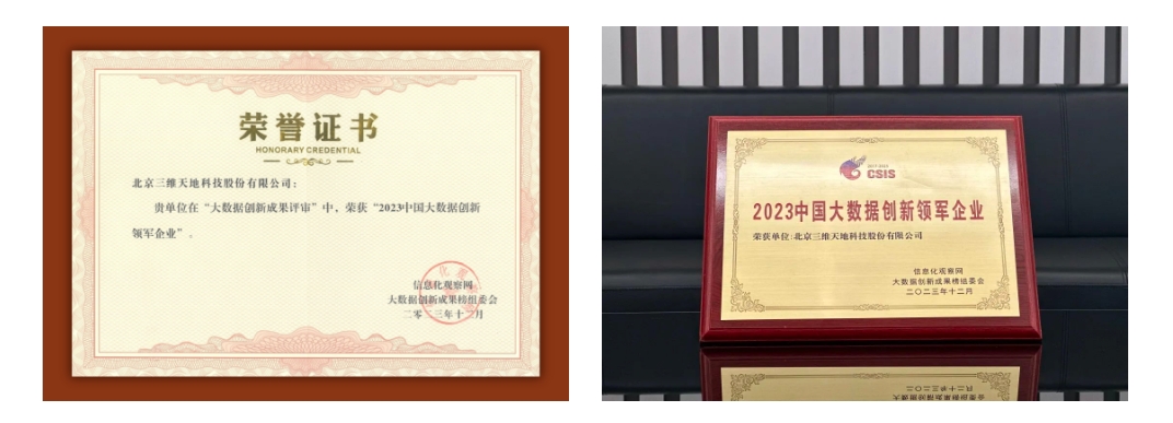 點亮數(shù)據(jù)新價值|三維天地榮獲2023中國大數(shù)據(jù)創(chuàng)新領軍企業(yè)