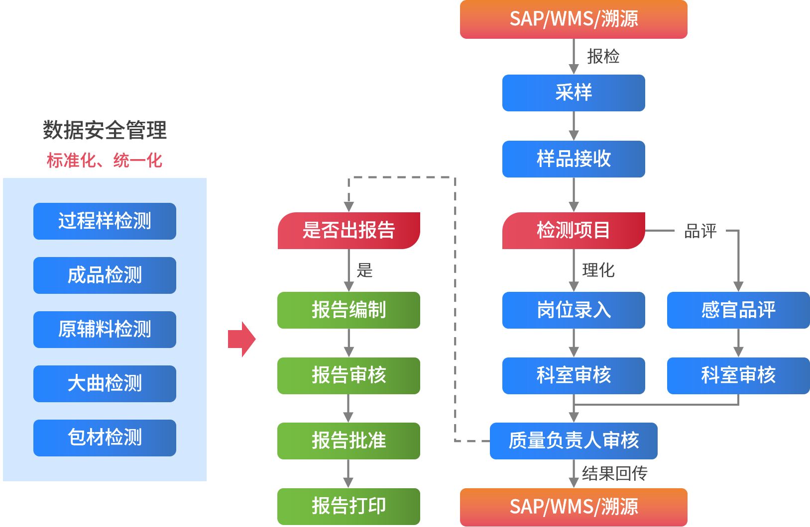 對于白酒企業而言,質量檢測部門肩負著企業眾多檢測任務,涵蓋從研發、生產到產品出廠的各個階段,而LIMS系統在這些環節中扮演著至關重要的角色。LIMS系統不僅能夠管理新產品研發過程中的檢驗工作,還能夠處理包括原料進廠、生產過程中的產品、最終出廠的成品以及所有相關生產材料的檢測信息。