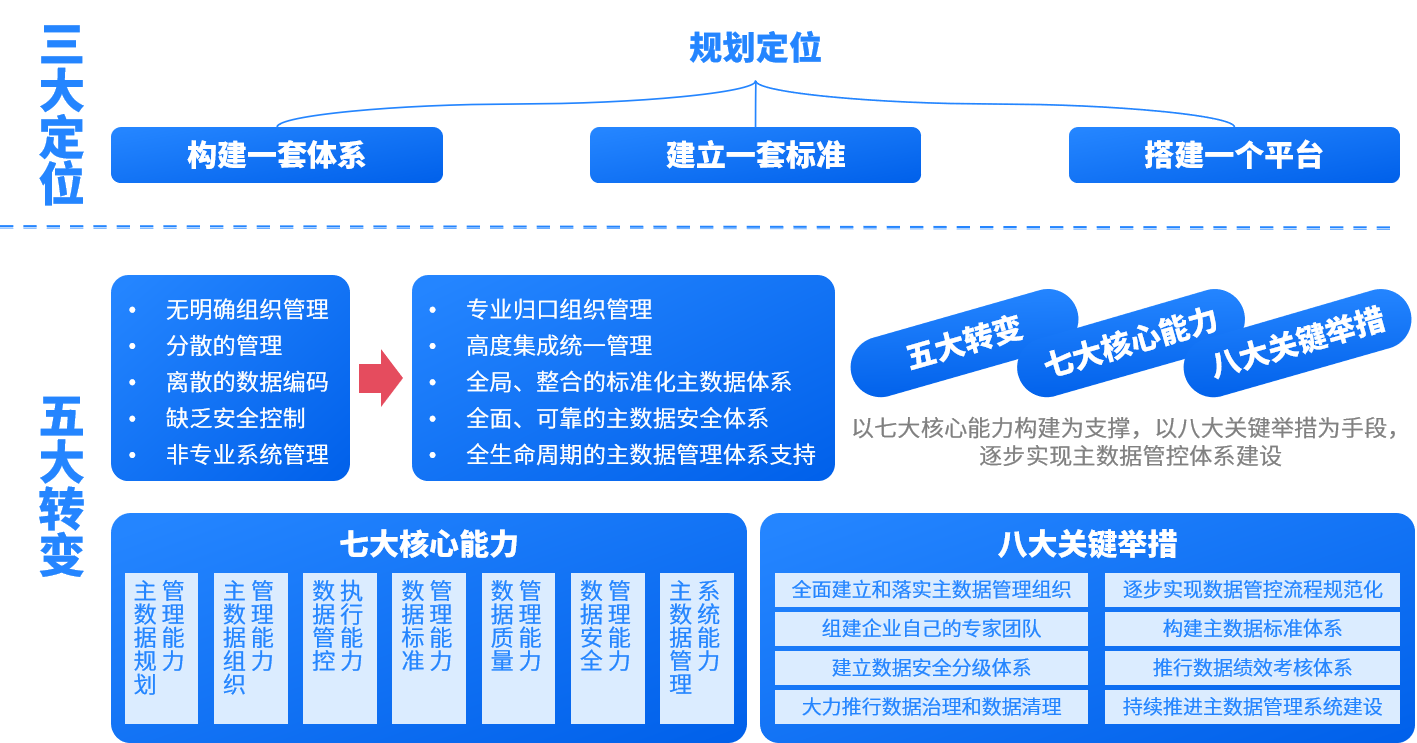 隨著該集團(tuán)業(yè)務(wù)的不斷擴(kuò)展,形成了綠色投資、工程服務(wù)、和高端制造三大業(yè)務(wù)板塊,各類業(yè)務(wù)數(shù)據(jù)不斷增加累積,現(xiàn)已沉淀物料、組織機(jī)構(gòu)、員工、客戶、供應(yīng)商等基礎(chǔ)數(shù)據(jù)。集團(tuán)信息化需求和信息化建設(shè)在此期間也經(jīng)歷了一個(gè)從無(wú)到有、從簡(jiǎn)單到復(fù)雜的逐步深入的過(guò)程,從而使得一些需要在整個(gè)企業(yè)范圍內(nèi)各個(gè)系統(tǒng)中共享的基礎(chǔ)數(shù)據(jù)被分散到各個(gè)系統(tǒng)分別管理,導(dǎo)致公司的主數(shù)據(jù)在不同系統(tǒng)中編碼不一致,主數(shù)據(jù)管理缺乏一致性、準(zhǔn)確性、完整性。 在此情況下,該集團(tuán)積極配合國(guó)家能源發(fā)展、節(jié)能減排戰(zhàn)略規(guī)劃,立足于客戶需求,秉承“增產(chǎn)節(jié)能,效益型環(huán)保”理念,堅(jiān)持用科技的力量帶動(dòng)環(huán)保事業(yè)的發(fā)展,亟需建立一個(gè)主數(shù)據(jù)管理系統(tǒng),通過(guò)該系統(tǒng)固化相關(guān)數(shù)據(jù)管理流程和管理規(guī)范,以支撐數(shù)據(jù)標(biāo)準(zhǔn)體系的貫徹執(zhí)行,從而更好地實(shí)現(xiàn)信息資源的充分共享和最大化利用。 一、建體系 規(guī)劃和設(shè)計(jì)集團(tuán)主數(shù)據(jù)標(biāo)準(zhǔn)體系,明確組織分工、梳理管理流程、規(guī)劃藍(lán)圖方案,搭配切實(shí)可控的數(shù)據(jù)管理KPI體系,提升數(shù)據(jù)管理能力,實(shí)現(xiàn)主數(shù)據(jù)管理的體系化、標(biāo)準(zhǔn)化和平臺(tái)化。構(gòu)建一套完整的主數(shù)據(jù)管理體系框架,充分考慮企業(yè)的信息系統(tǒng)及主數(shù)據(jù)需求的實(shí)際情況。 二、定標(biāo)準(zhǔn) 制定主數(shù)據(jù)相關(guān)標(biāo)準(zhǔn)與規(guī)范,并通過(guò)數(shù)據(jù)清洗工作,提升數(shù)據(jù)質(zhì)量;根據(jù)主數(shù)據(jù)分類明確相關(guān)管理組織以及職責(zé),制定物料主數(shù)據(jù)標(biāo)準(zhǔn)、管理流程和制度。 三、搭平臺(tái) 搭建集團(tuán)主數(shù)據(jù)管理平臺(tái),實(shí)現(xiàn)對(duì)主數(shù)據(jù)的全生命周期管理;依據(jù)主數(shù)據(jù)標(biāo)準(zhǔn)和主數(shù)據(jù)模型定義的規(guī)則進(jìn)行校驗(yàn)、清洗、發(fā)布,實(shí)現(xiàn)對(duì)主數(shù)據(jù)的全生命周期管理,并整合出統(tǒng)一的、可信任的主數(shù)據(jù)。 四、做共享 集成體系建設(shè),開(kāi)發(fā)一套與集團(tuán)及所屬企業(yè)相關(guān)應(yīng)用軟件的接口設(shè)計(jì)與集成主數(shù)據(jù)集成接口;通過(guò)統(tǒng)一和標(biāo)準(zhǔn)化物料主數(shù)據(jù),可以消除因物料編碼不一致所造成的集團(tuán)之間物料管理混亂和協(xié)同困難的情況,實(shí)現(xiàn)集團(tuán)之間信息的共享,進(jìn)一步實(shí)現(xiàn)物料的全生命周期跟蹤和追溯。 五、接運(yùn)維 建立一套主數(shù)據(jù)管理運(yùn)維體系,并通過(guò)知識(shí)轉(zhuǎn)移,培養(yǎng)集團(tuán)數(shù)據(jù)管理團(tuán)隊(duì)。制定基礎(chǔ)培訓(xùn)、應(yīng)用培訓(xùn)以及運(yùn)維培訓(xùn)、開(kāi)發(fā)培訓(xùn)計(jì)劃,針對(duì)本項(xiàng)目的基本情況宣貫、系統(tǒng)的基礎(chǔ)功能使用操作、日常運(yùn)維管理、管理員操作等基礎(chǔ)知識(shí)進(jìn)行培訓(xùn)。 通過(guò)本項(xiàng)目的建設(shè),確定集團(tuán)主數(shù)據(jù)體系建設(shè)的整體發(fā)展思路為“以七大核心能力構(gòu)建為支撐,以八大關(guān)鍵舉措為手段,逐步實(shí)現(xiàn)主數(shù)據(jù)管控體系建設(shè)”。即在進(jìn)行主數(shù)據(jù)規(guī)劃管理能力、數(shù)據(jù)組織管理能力、數(shù)據(jù)管控執(zhí)行能力、數(shù)據(jù)標(biāo)準(zhǔn)管理能力、數(shù)據(jù)質(zhì)量管理能力、數(shù)據(jù)安全管理能力、主數(shù)據(jù)管理系統(tǒng)能力“七大核心能力”建設(shè)的基礎(chǔ)上,制定今后集團(tuán)主數(shù)據(jù)體系的各項(xiàng)發(fā)展目標(biāo),并通過(guò)主數(shù)據(jù)管理組織固化、專家團(tuán)隊(duì)建設(shè)、主數(shù)據(jù)標(biāo)準(zhǔn)體系構(gòu)建、主數(shù)據(jù)治理和主數(shù)據(jù)清理、主數(shù)據(jù)管控流程標(biāo)準(zhǔn)、主數(shù)據(jù)安全分級(jí)體系、主數(shù)據(jù)績(jī)效考核和主數(shù)據(jù)管理系統(tǒng)建設(shè)等“八大關(guān)鍵舉措”,保障主數(shù)據(jù)體系規(guī)劃內(nèi)容的落實(shí)和實(shí)施。 三維天地通過(guò)本期主數(shù)據(jù)項(xiàng)目建設(shè),促進(jìn)了該集團(tuán)物料數(shù)據(jù)共享率的提高,進(jìn)而使得構(gòu)建全集團(tuán)范圍內(nèi)的“物資管理中心模式”成為可能;通過(guò)主數(shù)據(jù)管理實(shí)現(xiàn)了數(shù)據(jù)的標(biāo)準(zhǔn)化、一致性和準(zhǔn)確性,提高了數(shù)據(jù)質(zhì)量;減少了重復(fù)數(shù)據(jù)、錯(cuò)誤數(shù)據(jù)和不完整數(shù)據(jù)的出現(xiàn),提高了數(shù)據(jù)的可用性和可靠性。 主數(shù)據(jù)管理使得該集團(tuán)能夠更好地整合和管理各個(gè)二級(jí)單位的數(shù)據(jù),從而提高了業(yè)務(wù)流程的效率;通過(guò)統(tǒng)一的數(shù)據(jù)源,減少了數(shù)據(jù)傳遞和處理