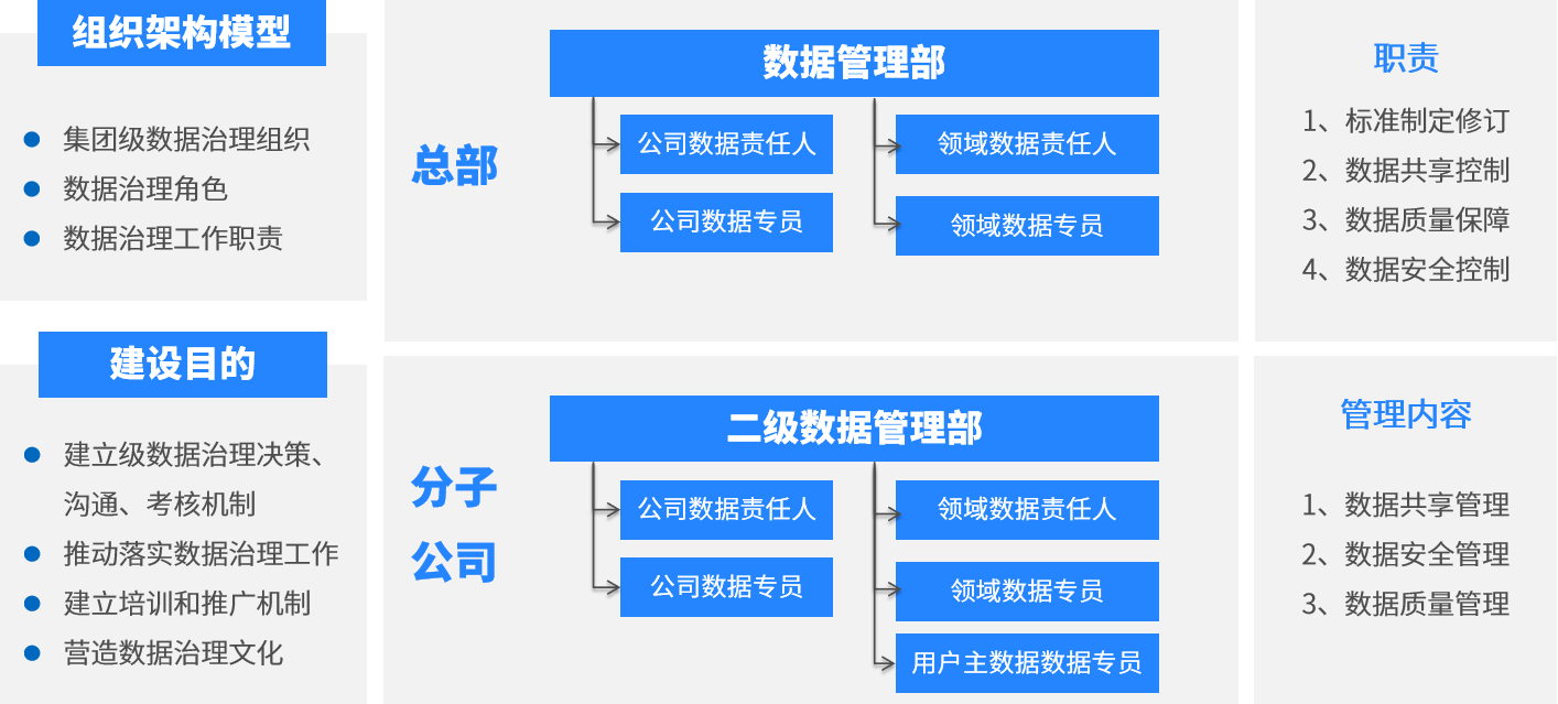 企業(yè)數(shù)據(jù)資產(chǎn)的常態(tài)良性運營,是“管理”+“技術(shù)”不斷迭代結(jié)合的結(jié)果,健全的數(shù)據(jù)管理組織體系及配套的管理制度是企業(yè)數(shù)據(jù)受控和順暢協(xié)同運營的保障。