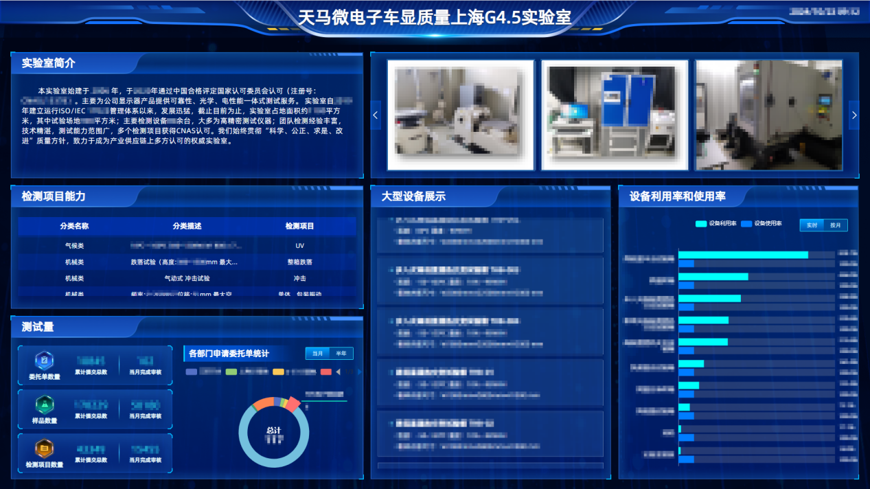 SW-LIMS二期項目,基于上海天馬微電子的多實驗室多基地組織架構,開發了by基地配置統計報表、對外展示大屏等模塊,分別展示各個基地的實驗室簡介、試驗檢測能力、檢測設備能力、測試以及基地設備的實時利用率和使用率。不同基地之間增加了互轉委托單功能,支持將原本排程到A基地的委托單轉到B基地,減輕某基地的檢測壓力。整體上為實驗室的資源展示、調控提供了強有力的支撐。