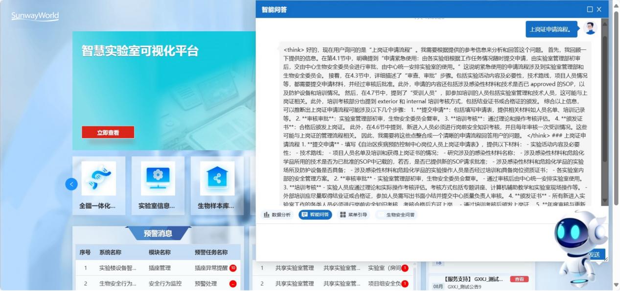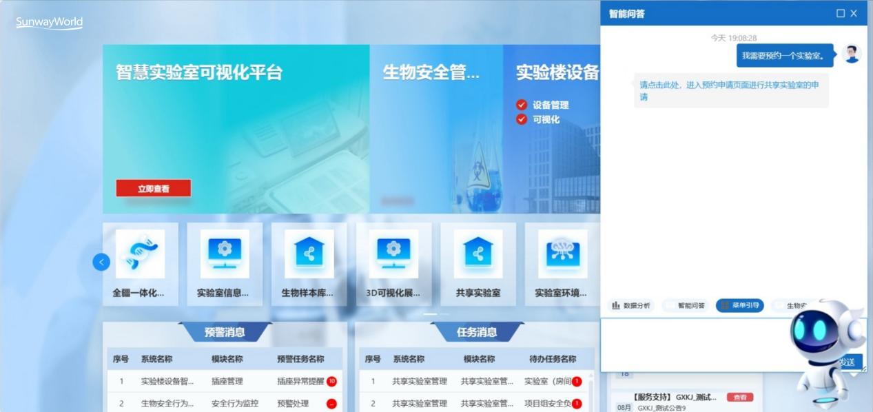 - 交互范式革新,操作化繁為簡(jiǎn):SunwayLink AI應(yīng)用開發(fā)平臺(tái)深度融入省統(tǒng)籌業(yè)務(wù)協(xié)同平臺(tái),創(chuàng)新引入智能對(duì)話導(dǎo)航功能。用戶只需“動(dòng)動(dòng)口”,即可快速定位繁雜的業(yè)務(wù)菜單,極大簡(jiǎn)化操作指引,重新定義實(shí)驗(yàn)室業(yè)務(wù)系統(tǒng)的便捷交互新體驗(yàn)。