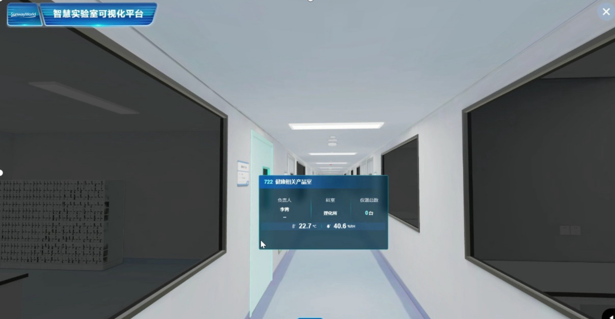 - 孿生實(shí)驗(yàn)室交互管理:對(duì)實(shí)驗(yàn)室物理環(huán)境進(jìn)行虛擬仿真,突破信息孤島,將分散的各獨(dú)立管理系統(tǒng)(監(jiān)控軟件、門禁控制臺(tái)、設(shè)備管理平臺(tái)等)無(wú)縫集成于統(tǒng)一的3D虛擬環(huán)境。管理者可通過數(shù)字分身進(jìn)行第一視角漫游,在虛擬實(shí)驗(yàn)室中自由行走、觀察細(xì)節(jié)、執(zhí)行交互指令,大幅提升管理效率與操作體驗(yàn)。